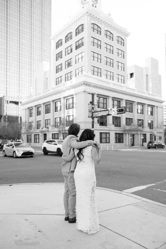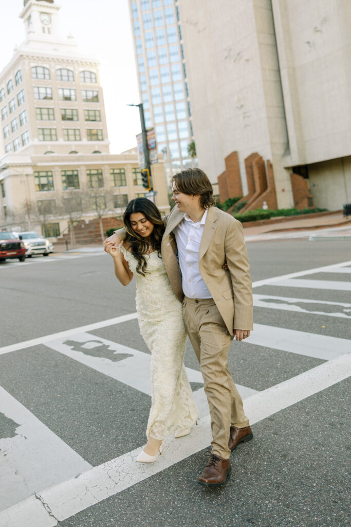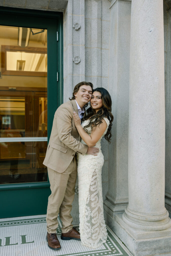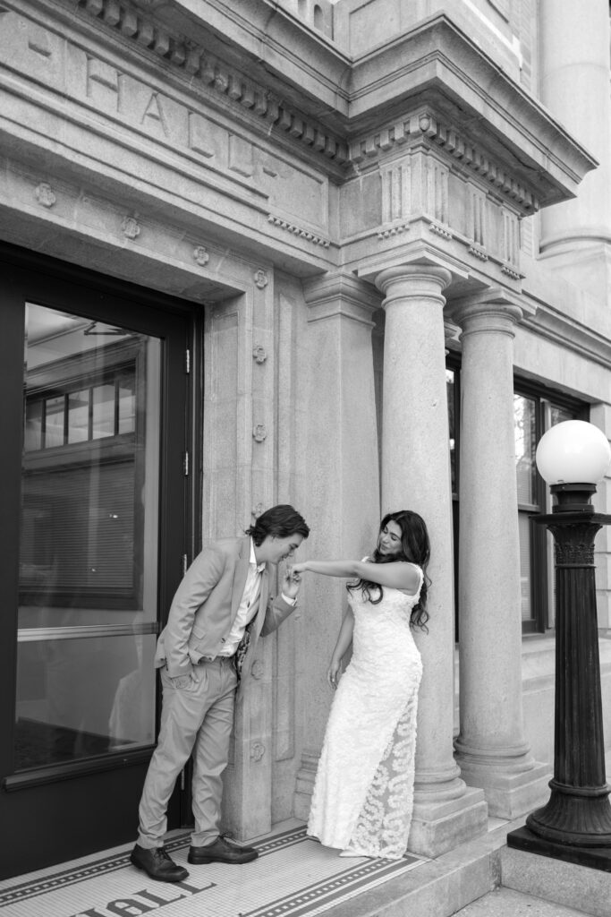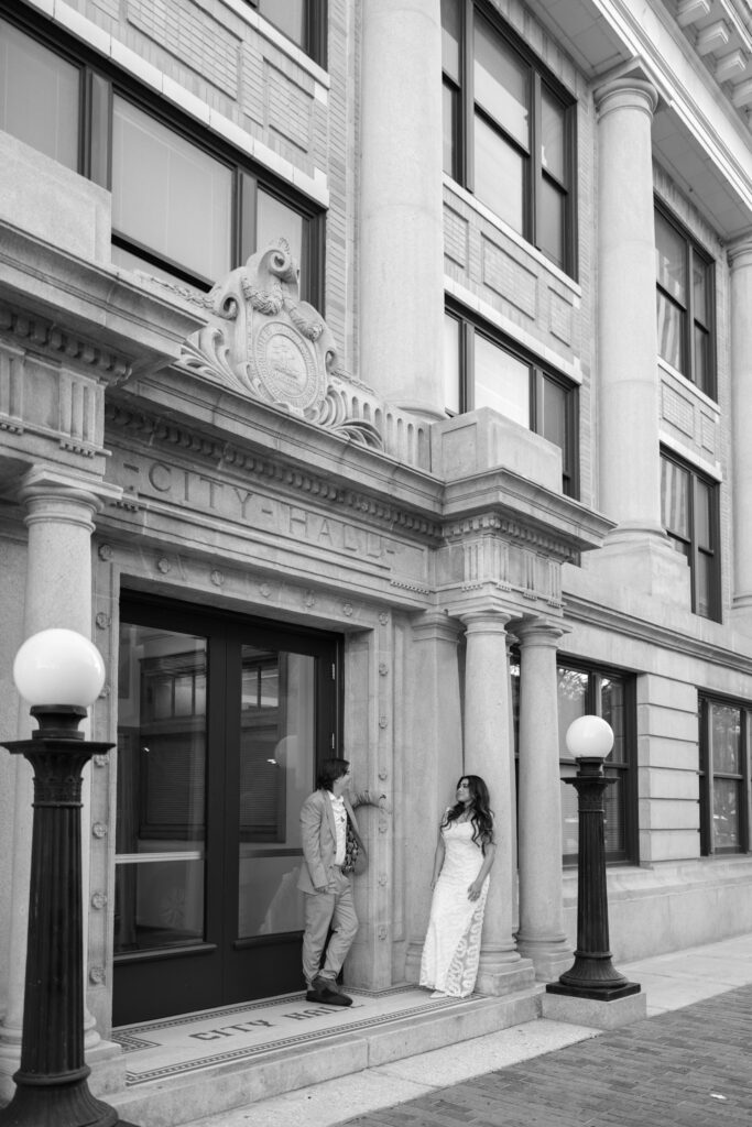We walked near the courthouse, leaned into the classic architecture, and kept things simple and relaxed. No timelines, no pressure. Just the two of them, dressed up, laughing easily, and fully themselves. It felt less like a photo session and more like closing a chapter in the best way.